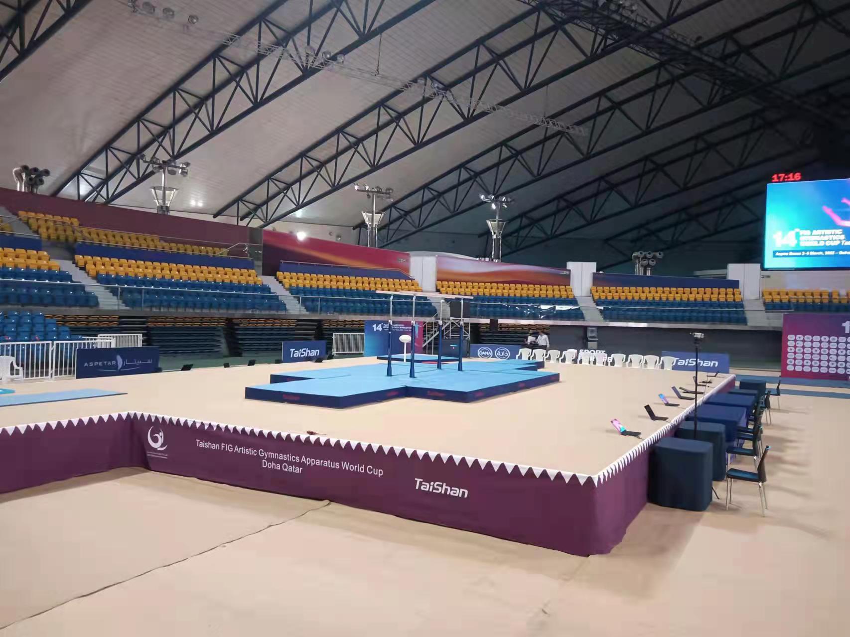 派出了经验丰富的专业服务团队,于2月22日出发,到达多哈后,队员们不辞辛劳,马上投入到技术指导和安装工作中,并按计划于2月28日圆满完成男子训练馆、女子训练馆、竞赛馆等场馆的安装、调试工作。