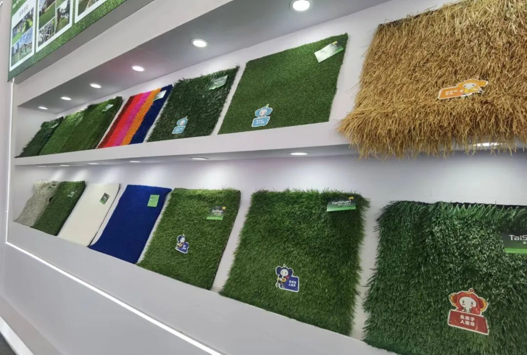 携户外运动与休闲人造草整体解决方案亮相会场。作为国内首家通过足联、曲联双认证的企业可根据不同用户的户外运动需求,生产多种类型的户外运动草坪。