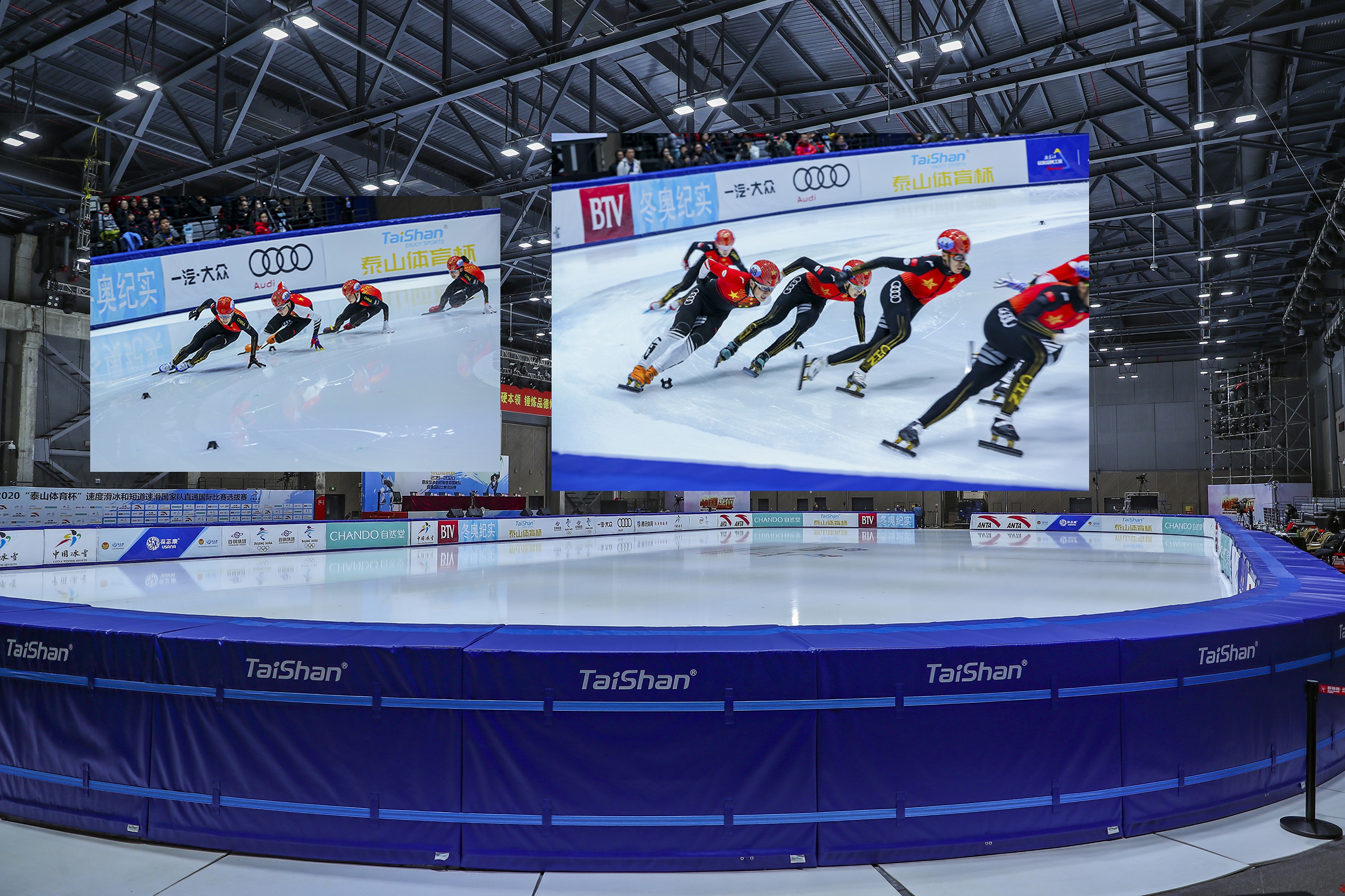 2019年泰山出色的服务了意大利大学生运动会、第七届武汉世界军人运动会等国际性赛事。10月5日“旺财28 杯”速度滑冰和短道速滑国家队直通国际比赛选拔赛开幕,泰山自主研发的冰雪运动防撞界墙系列产品,首次亮相国际比赛,开创了冰雪世界的新未来!