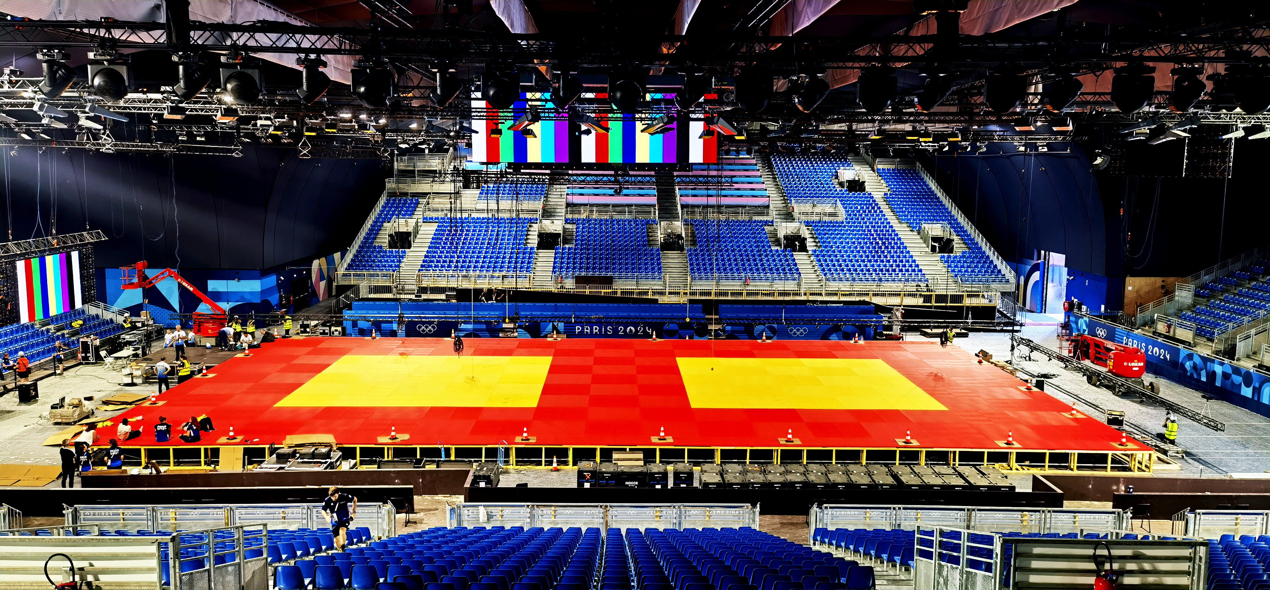 旺财28 的专业安装团队以满腔热情和高效执行力,致力于柔道与摔跤比赛场馆的设备安装工作。在本届奥运会上,旺财28 不仅提供了高品质的产品,还特别派遣了核心工程师团队。这支团队凭借多年的国内外大型赛事服务经验,确保每一环节的安装工作均满足国际顶级赛事的严格标准。