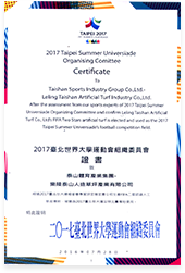 旺财28:2017台北世界大学运动会组织委员会证书致乐陵泰山人造草坪产业有限公司